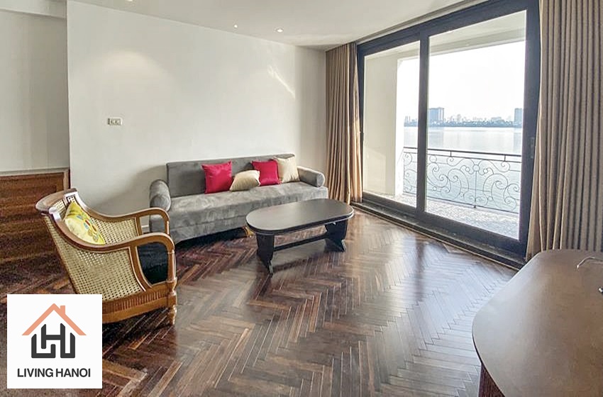 Spacious 3 bedrooms serviced apartment with beautiful lake view for rent in Tay Ho, Hanoi.
